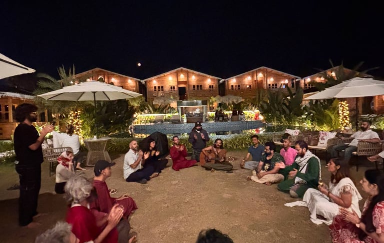 After returning to India, Dhani devoted himself even more fully to his spiritual practice, music, and service. His journey led him through sacred and transformative spaces in Rishikesh, Goa, the UAE, and beyond, where he began offering sessions in retreats, yoga studios, wellness centers, and conscious communities.